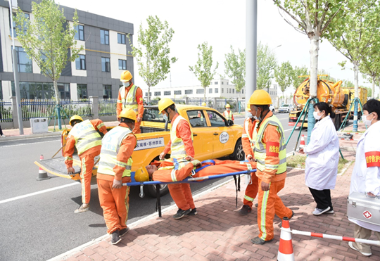 項目總指揮接到報告后立即啟動應(yīng)急預(yù)案,同時緊急抽調(diào)各方應(yīng)急救援隊伍迅速趕赴現(xiàn)場,開展安全生產(chǎn)應(yīng)急救援、現(xiàn)場醫(yī)療救治相關(guān)處置工作,待傷者逐漸恢復(fù)意識,隨后組織車輛將傷者送院就醫(yī)。至此,本次演練結(jié)束。