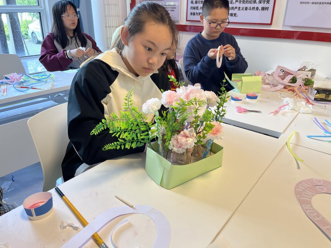 在親子感恩環(huán)節(jié)中,孩子們親手制作的花籃獻給母親傳遞愛意,用擁抱表達心聲,溫馨的氛圍感染著每一位參與者。