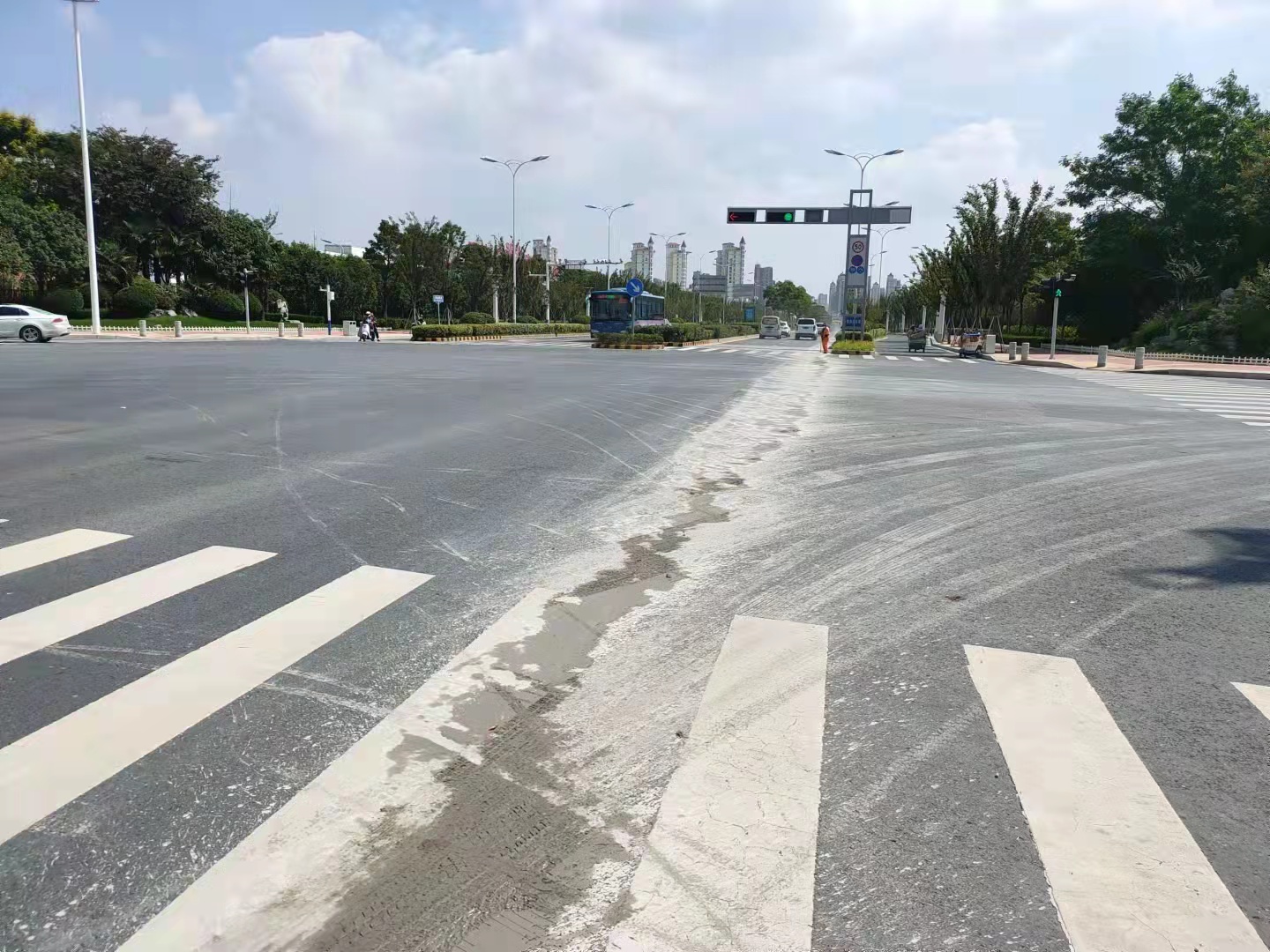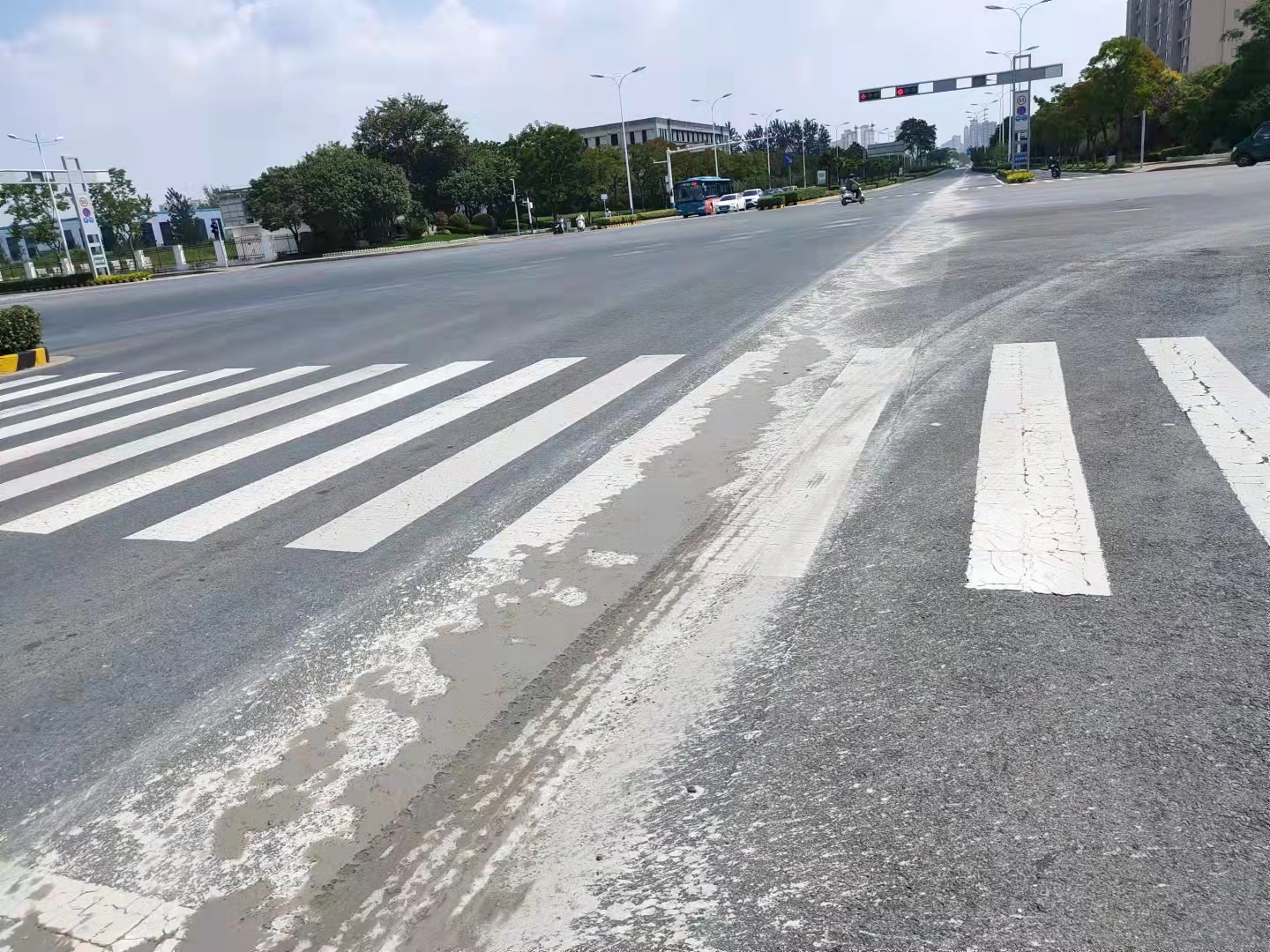 98日上午11時左右,園區(qū)主干道青海湖西路拋灑了大量混凝土,污染道路約2KM,建發(fā)公司接到信息后,迅速組織保潔單位對路面拋灑進行緊急處置。