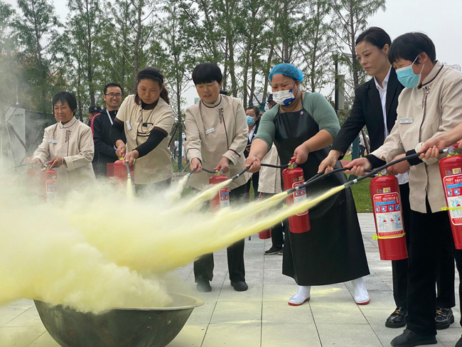 在活動現(xiàn)場,安全員向參與人員講解了如何正確使用滅火器方法和技能,總結(jié)了“提、拔、握、壓”四個步驟,并進行了使用方法的演示。保安、保潔人員輪流進行實際操作,逐步掌握滅火器的使用方法。