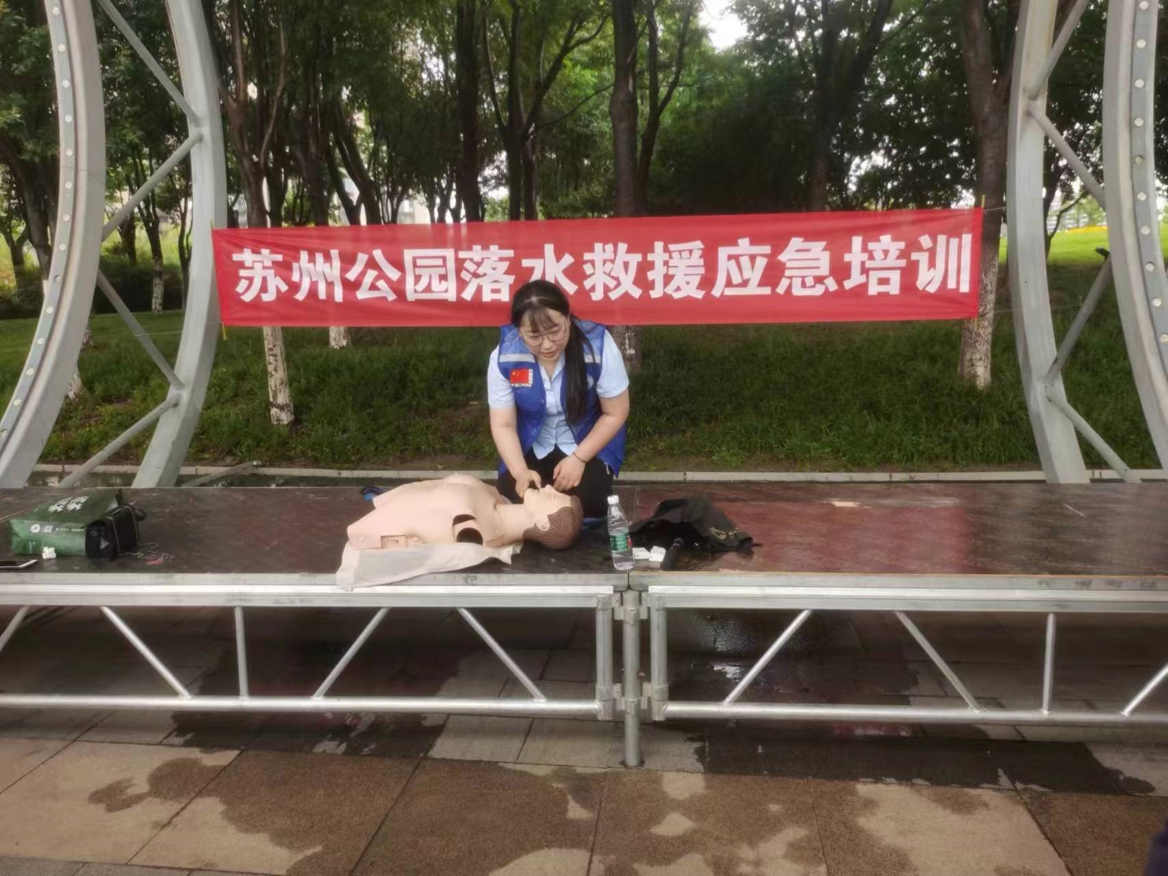 培訓現場,藍天救援隊救援人員從溺水概論、溺水現場救護、溺水預防三個方面詳細講解了防溺水知識及技能,同時使用人體模具演示了溺水后心肺復蘇急救方法,隨后,參訓人員進行了實操練習。