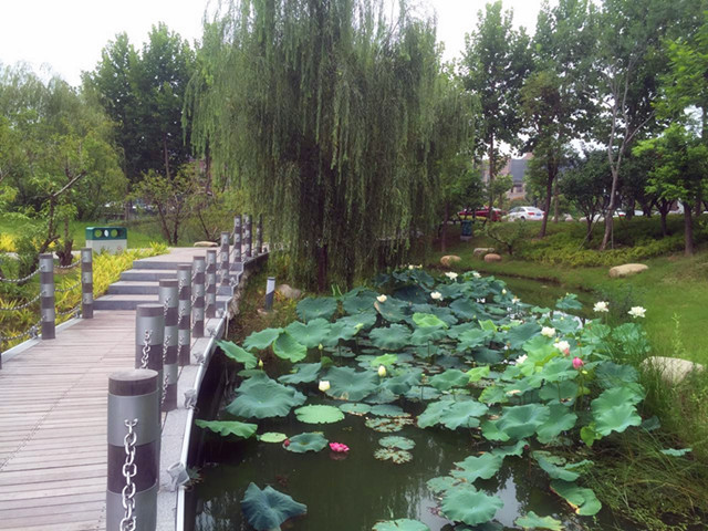 公園內(nèi)水面栽植荷花、睡蓮面積約1.2萬(wàn)平方米,荷花花期在6月至9月間,睡蓮花期在6月至8月, 7月、8月均為盛放期。