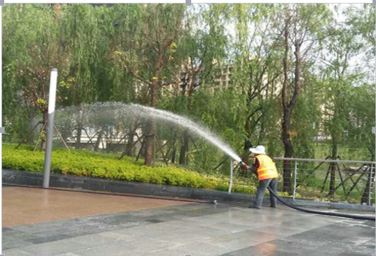 一是隨著氣溫不斷升高,為確保苗木及時得到灌溉,養(yǎng)護單位多措并舉進行澆水灌溉,各標段除了使用的4輛10噸水車段循環(huán)澆水外,同時利用3臺水泵進行澆灌,全力以赴完成綠化澆水工作。