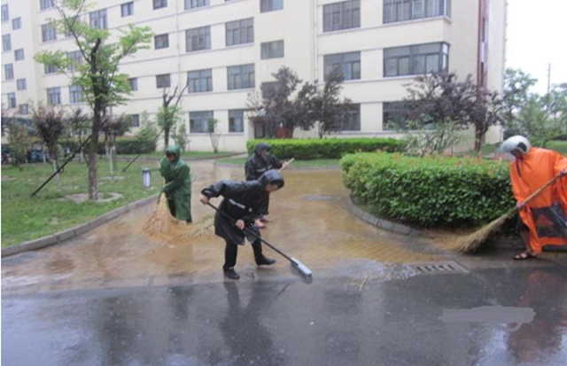雨天沖洗道路,雖比平日工作更為辛苦,但效果好且節(jié)水環(huán)保,物業(yè)管理部充分利用天然的水資源,借助雨水沖力,清潔人行道、溝槽積垢,以及清理路面口香糖、油污等污垢,從而達到事半功倍的效果,同時雨天清潔對交通影響較小,集中清潔在一定程度上不會對市民的出行造成太大影響。